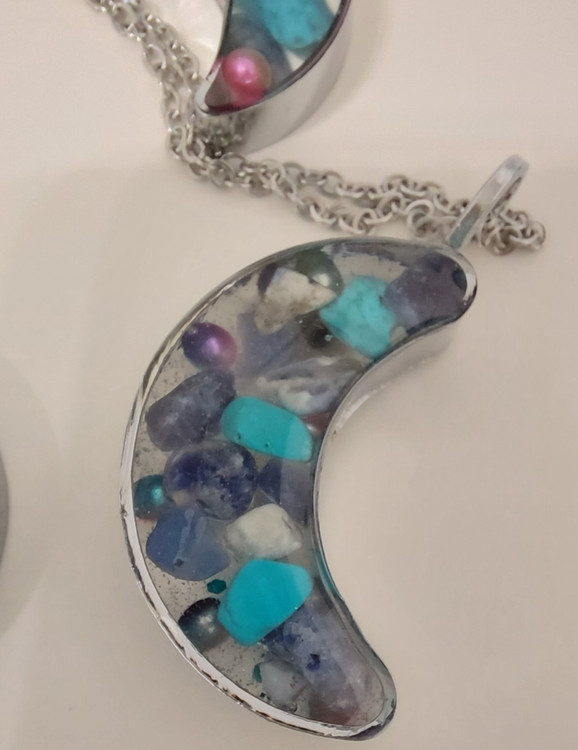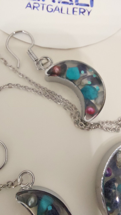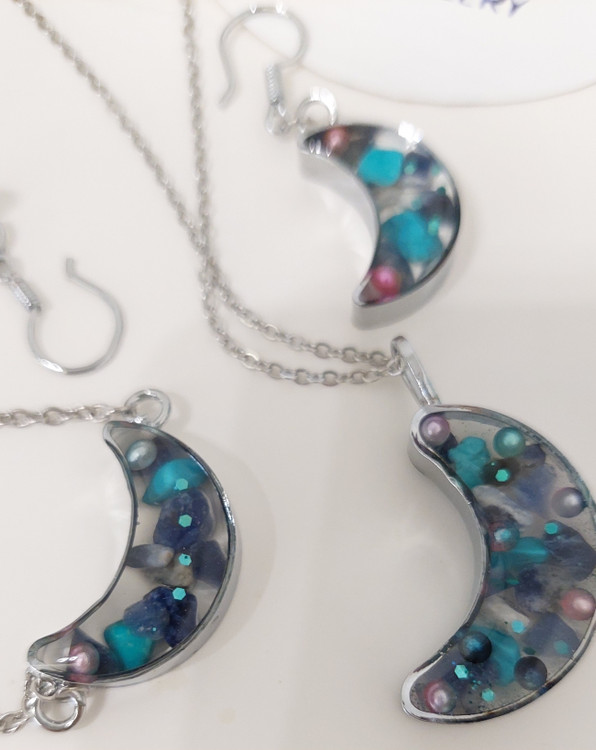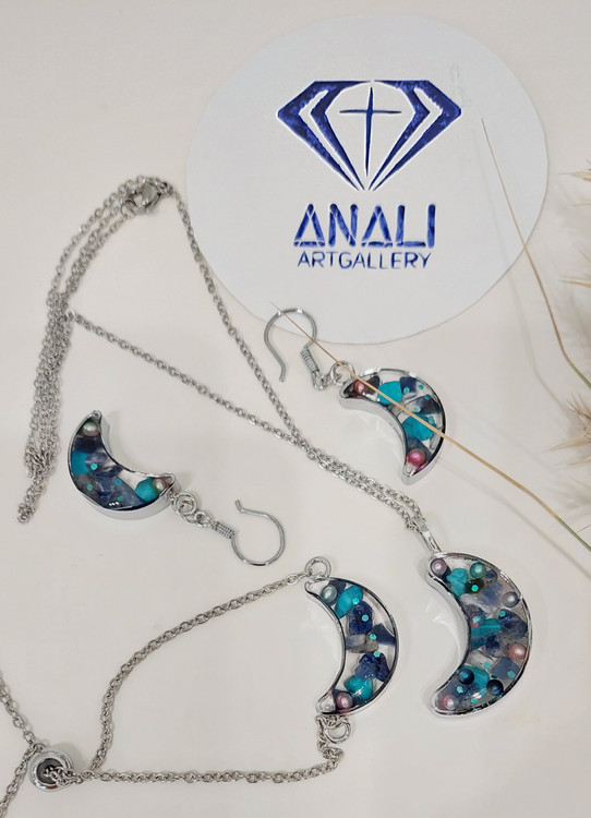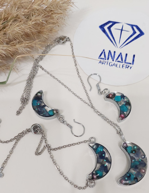 ست سنگ لاجورد طبیعی و رزین طرح ماه با تزئینات عالی، ترکیبی از انرژی سنگها و هنر رزین است.