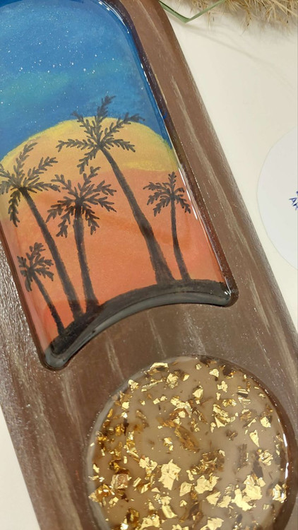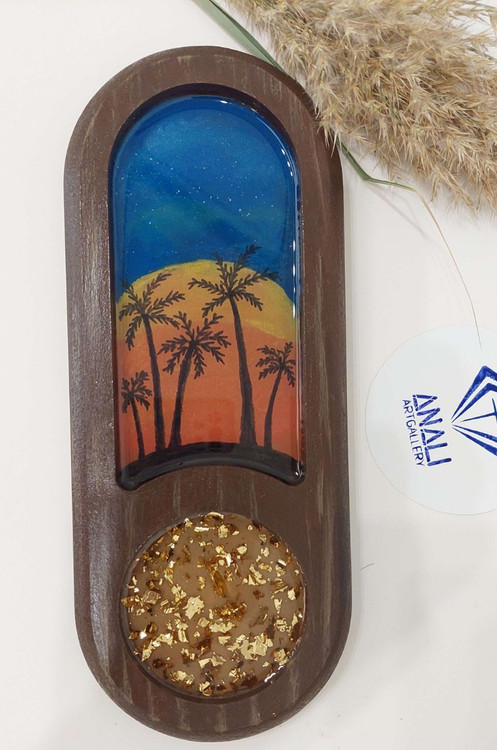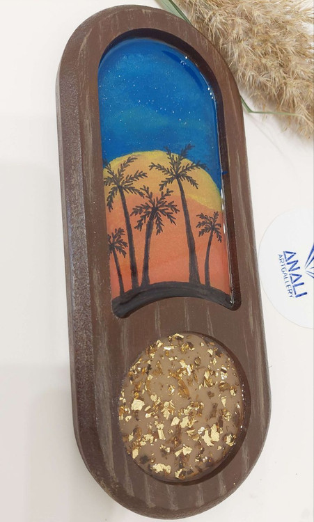 سینیهای تکنفره چوب و رزین با تزئینات عالی، انتخابی لوکس برای سرو چای و دسر هستند.