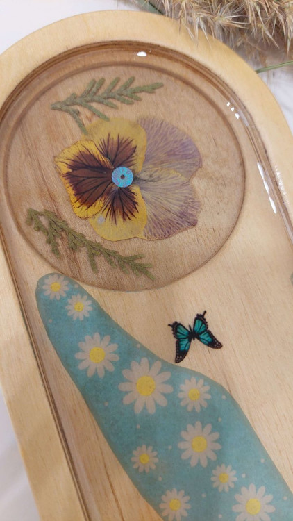 سینیهای تکنفره چوب و رزین با تزئینات عالی، انتخابی لوکس برای سرو چای و دسر هستند.