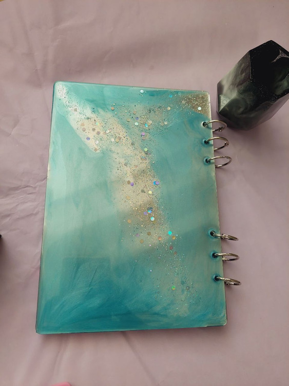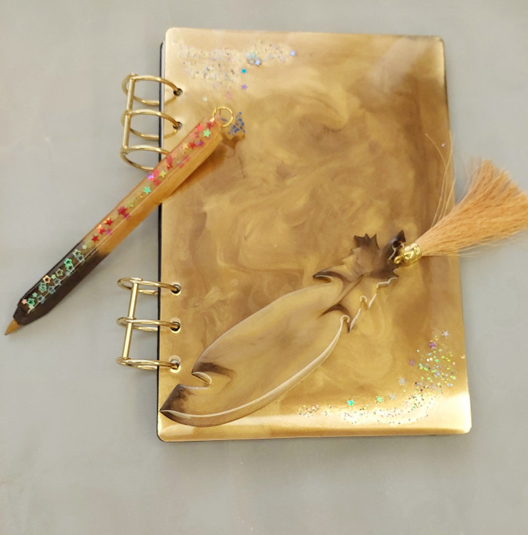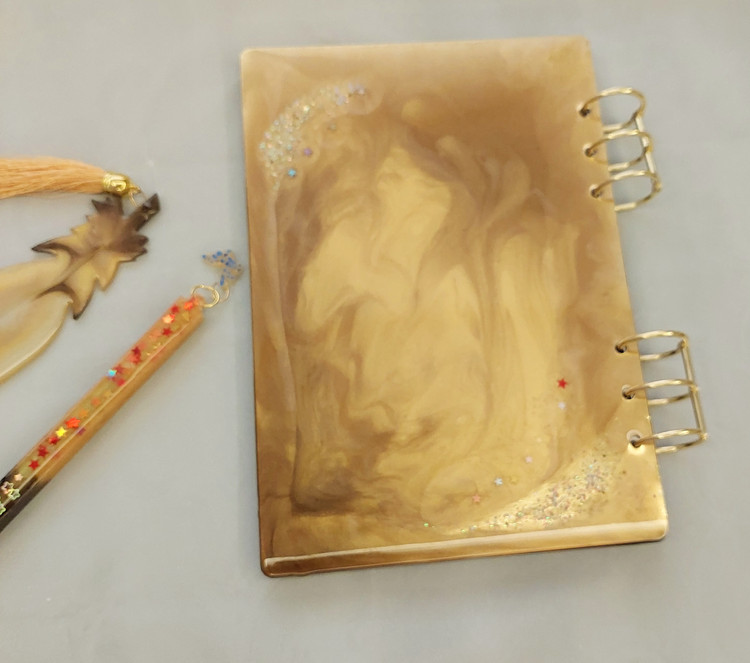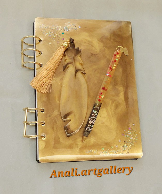 دفتر رزینی سایز A5 با جلدی سخت و هنری، انتخابی عالی برای کسانی است که به نوشتافزارهای خاص علاقه دارند. پوشش رزینی جلد، علاوه بر زیبایی، دوام دفتر را تضمین میکند.