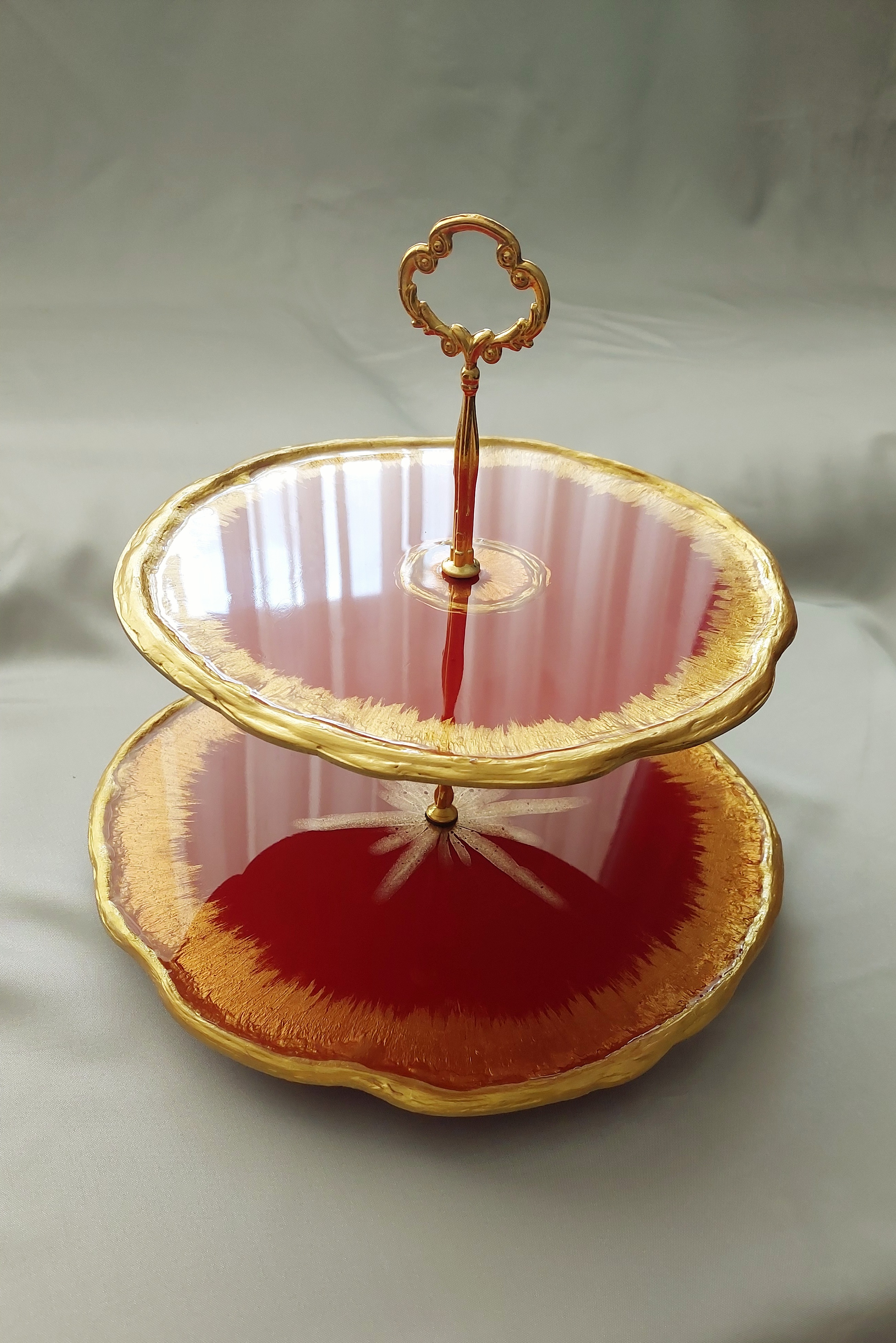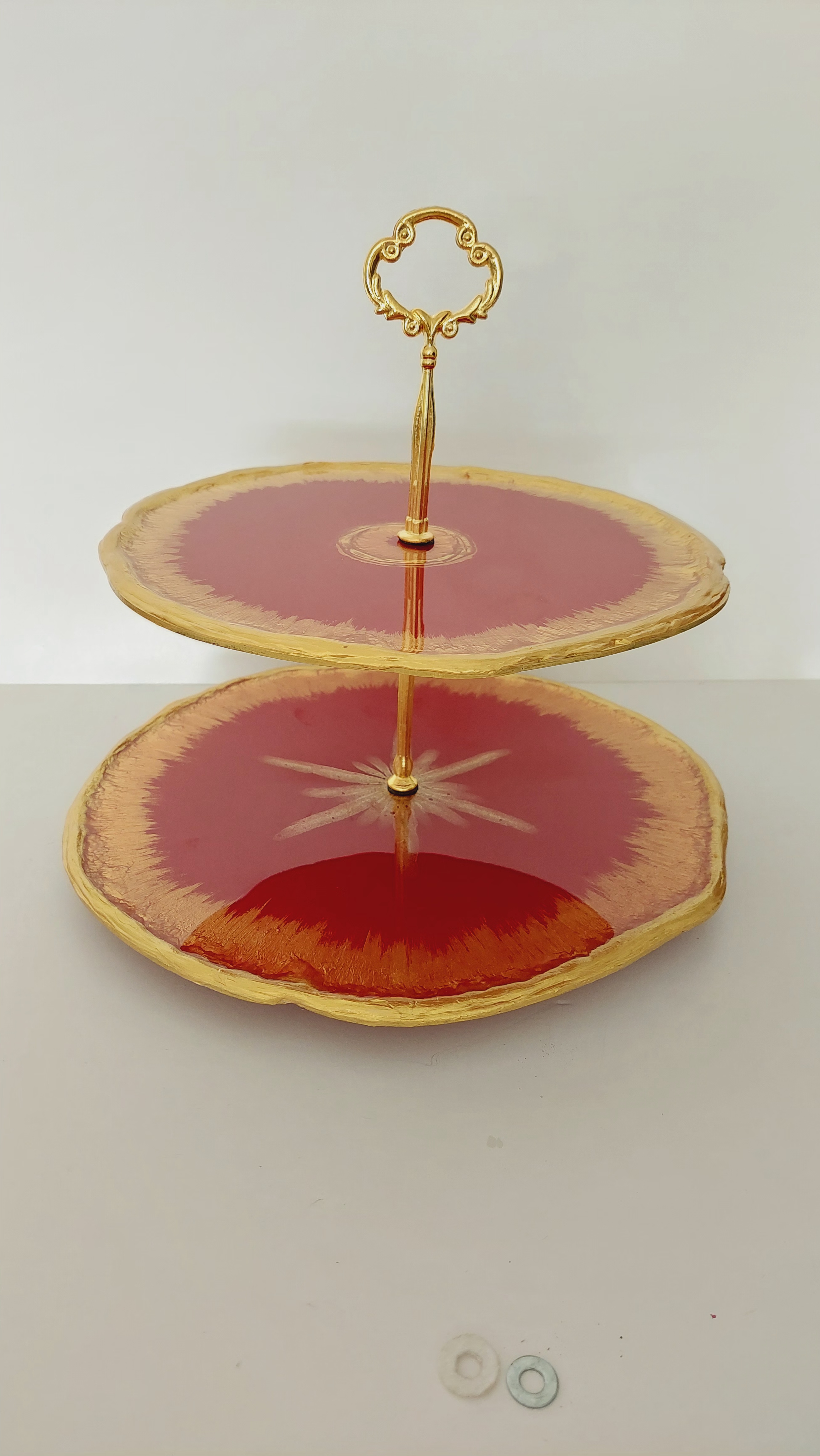 شیرینی خوری ۲طبقه چوب ورزین طرح گل