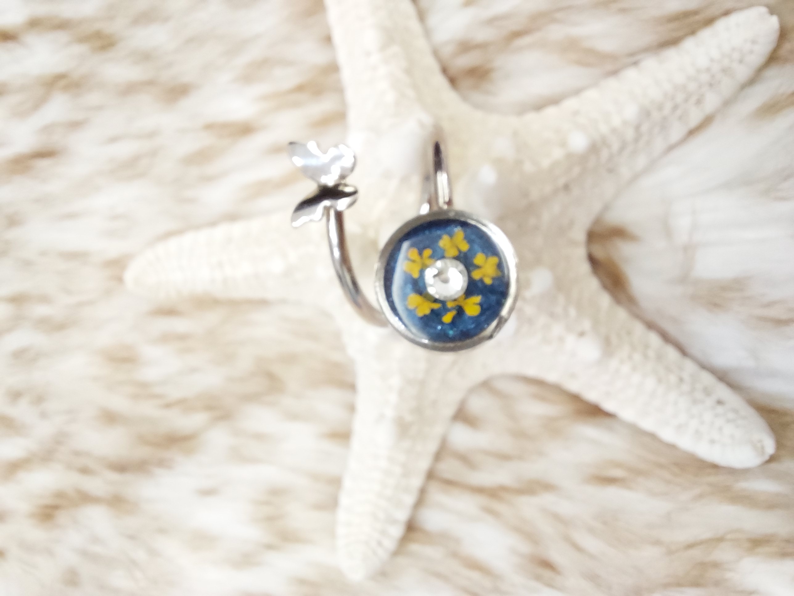 انگشتر رزینی با طرح پروانه و گیاه شوکران، ترکیبی فانتزی و هنری برای کسانی است که به دنبال اکسسوریهای متفاوت هستند. این انگشتر حسی از سبکی و رهایی را به دستان شما هدیه میدهد.