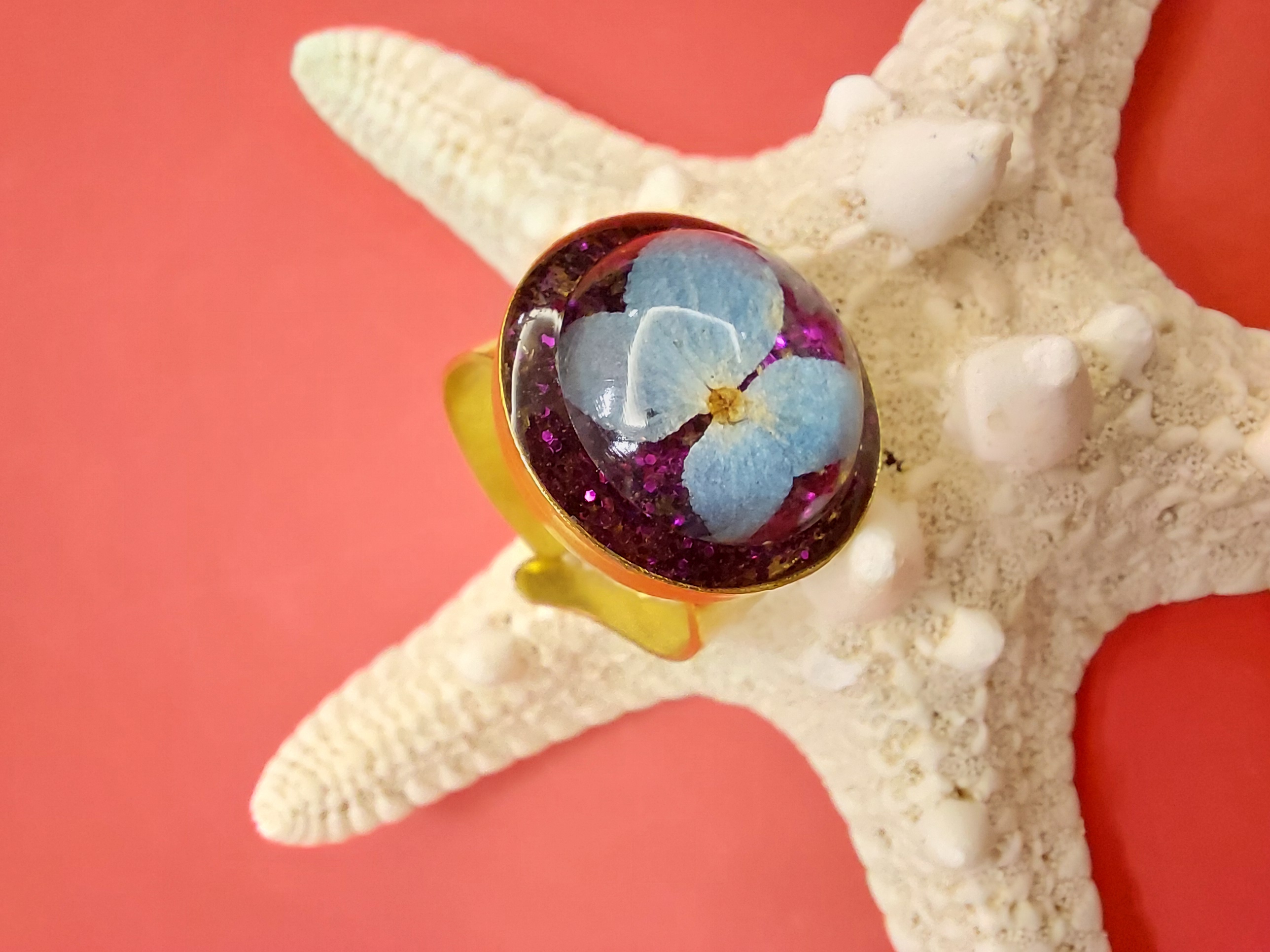 گردنبند رزینی ستاره‌ای با گل بابونه طبیعی و ورق طلا