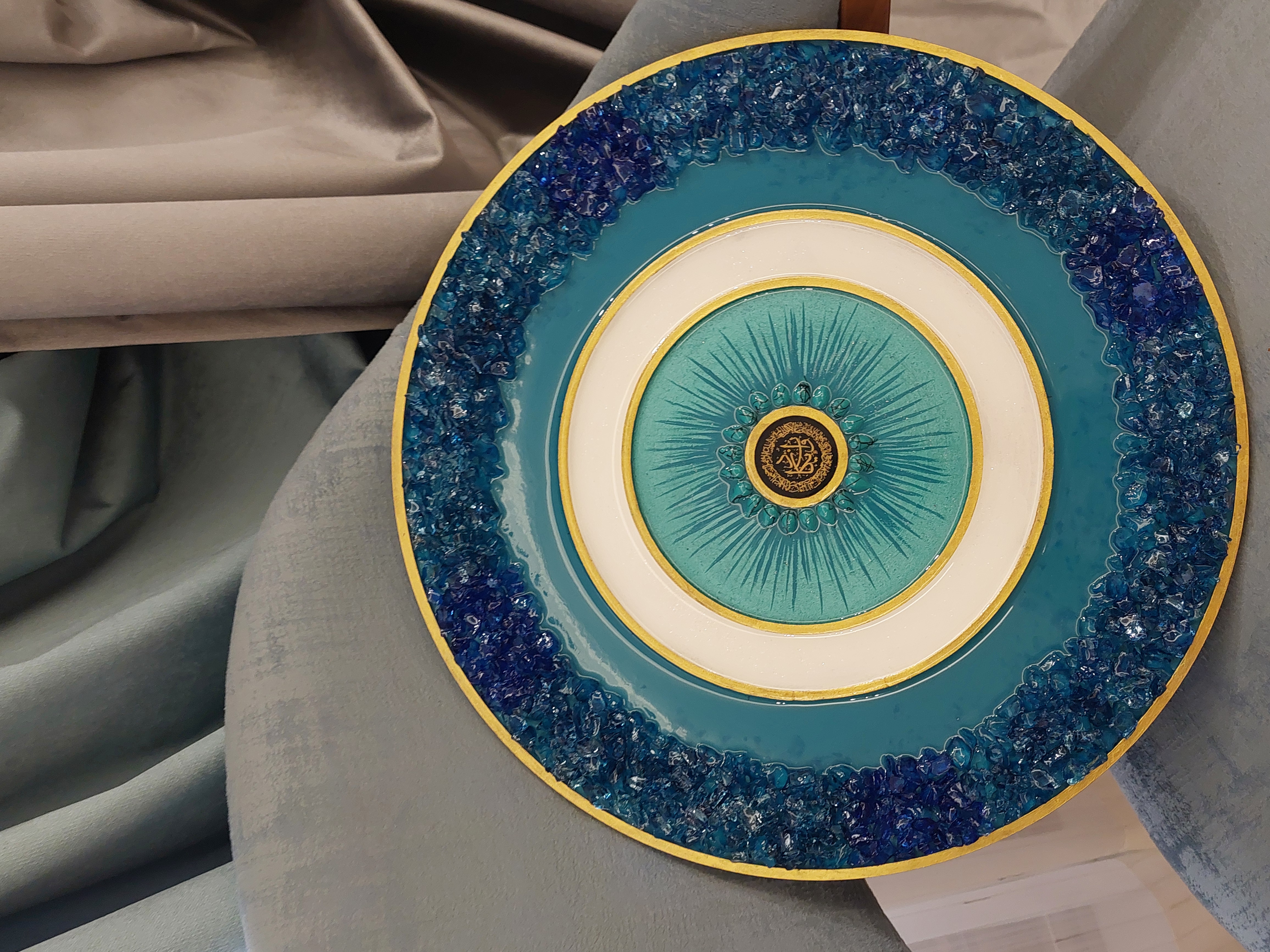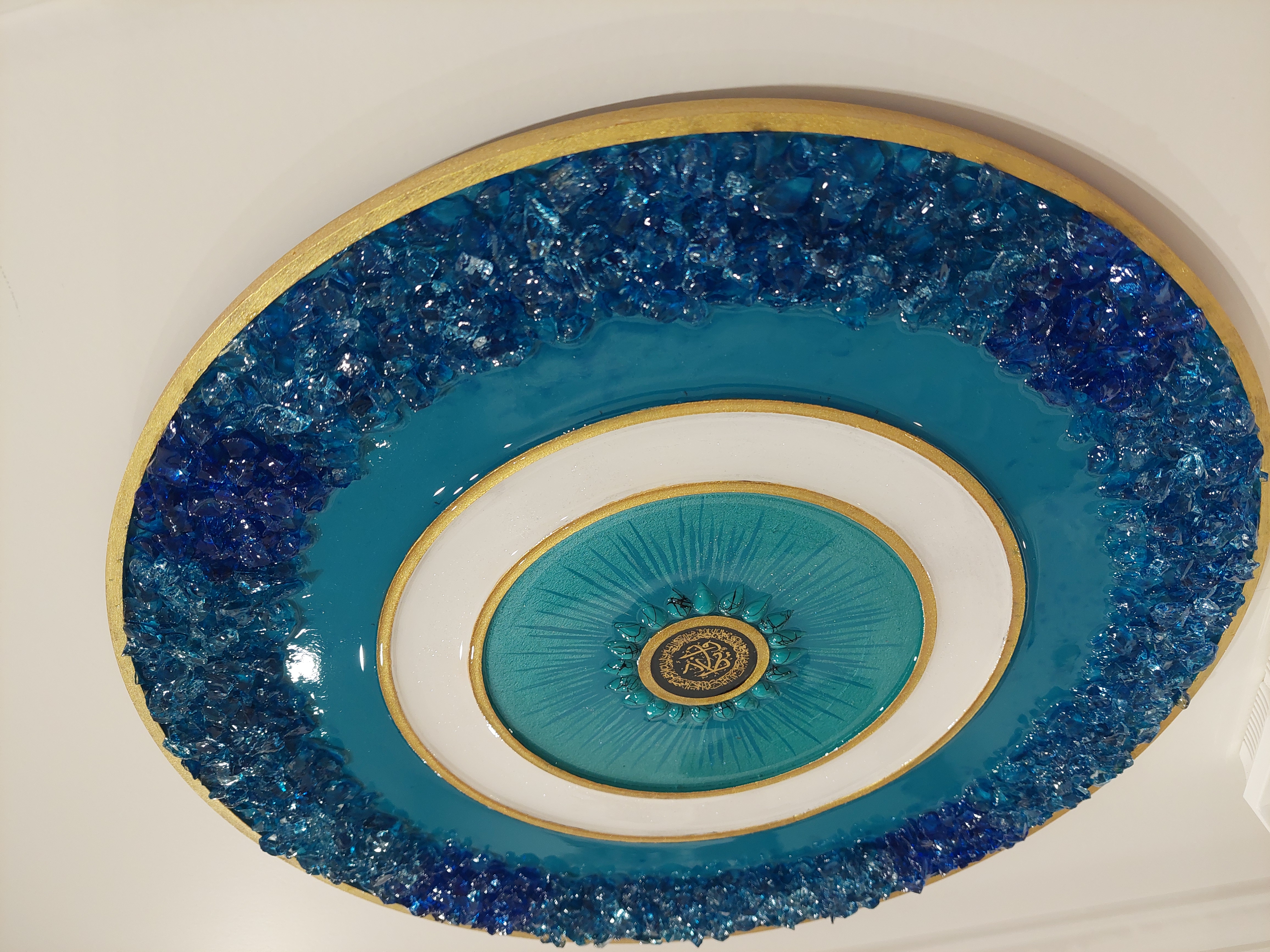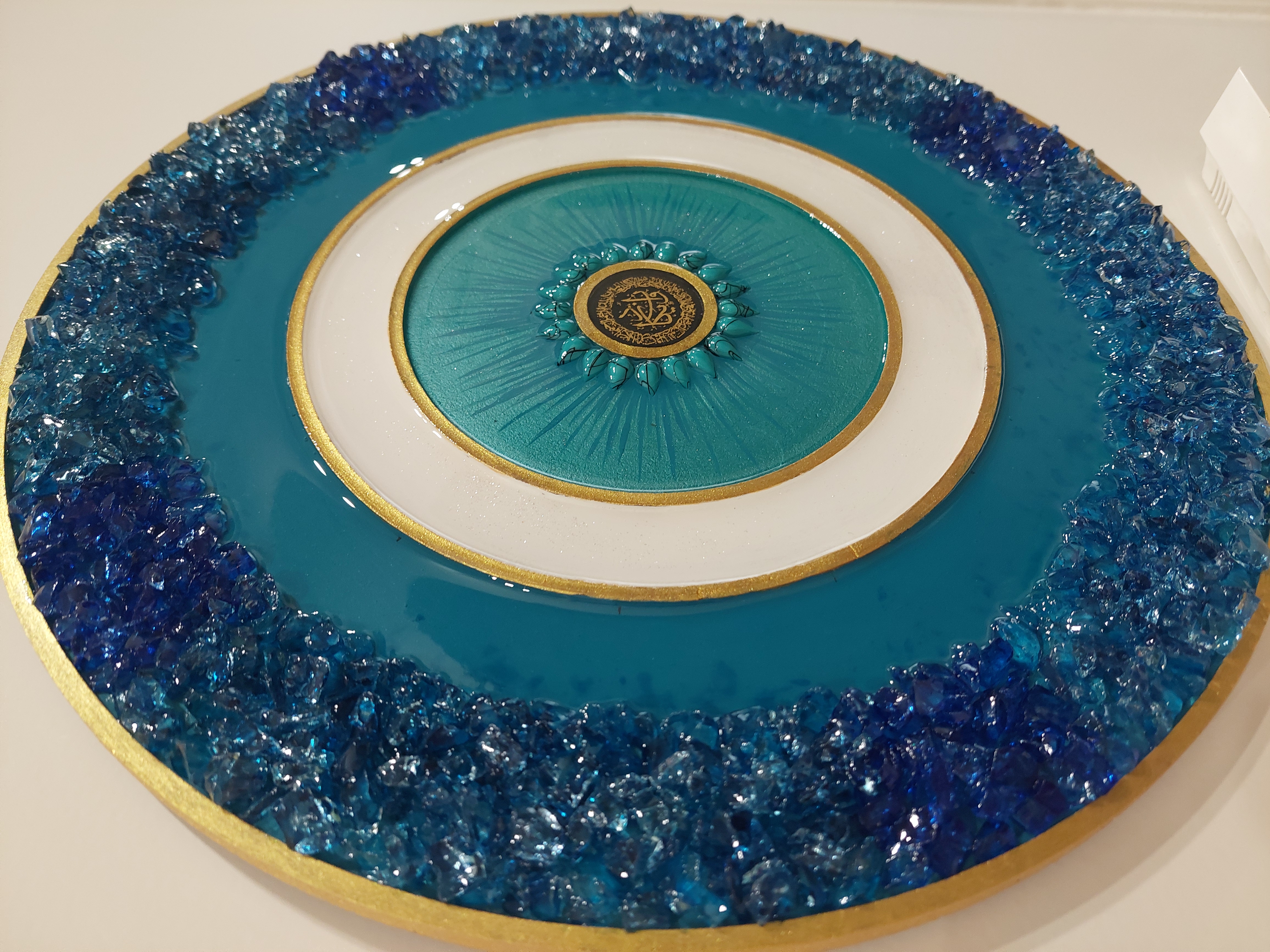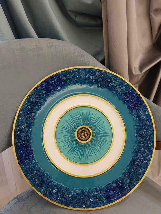 این تابلوی دستساز با قطر ۳۵ سانتیمتر، ترکیبی هنرمندانه از چوب طبیعی، رزین شفاف کریستالی و تزیینات چشمنواز است. در مرکز اثر، استیکر «وان یکاد» با ظرافت خاصی قرار گرفته که علاوه بر زیبایی، حس آرامش و معنویت را به فضای خانهتان هدیه میدهد.
