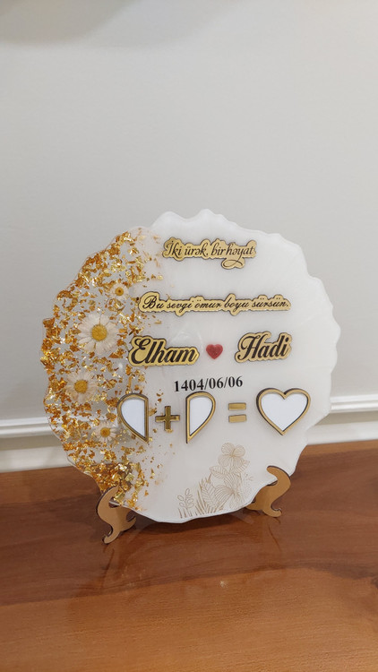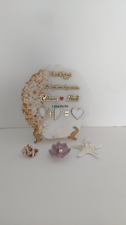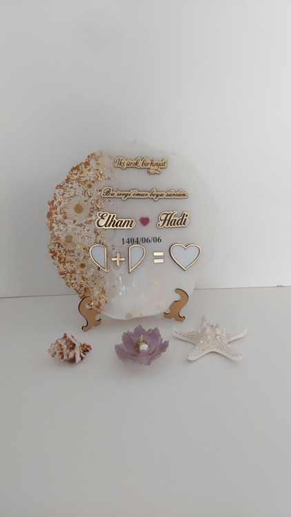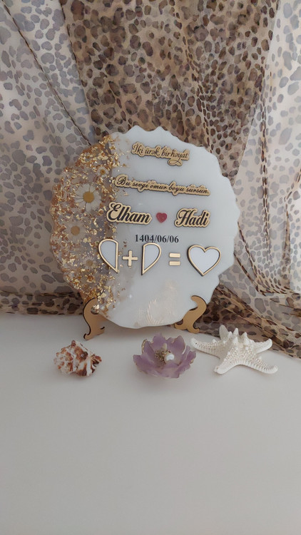 استند ازدواج رزینی با تزئینات عالی، راهی هنری برای ثبت تاریخ و اسامی پیوندتان است.
